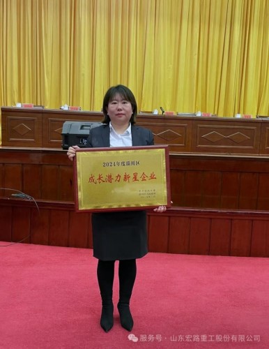 山東宏路重工股份有限公司榮獲了“2024年度淄川區成長潛力新星企業(yè)”的榮譽!宏路股份董事會秘書王雪芳代表公司上臺領獎。